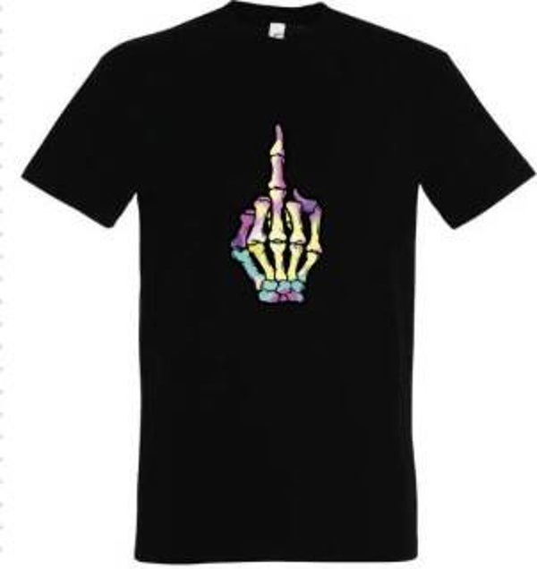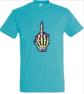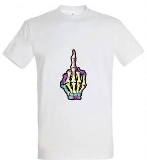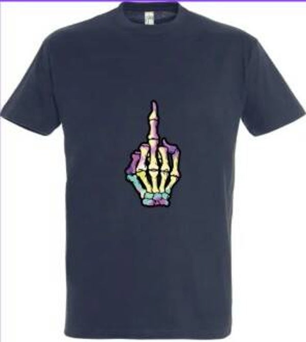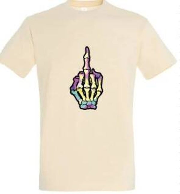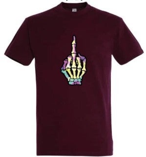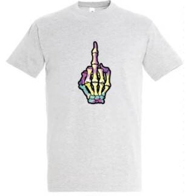 Dann ist dieses T-Shirt mit dem „Mittelfinger-Skelett“–Design genau dein Ding!