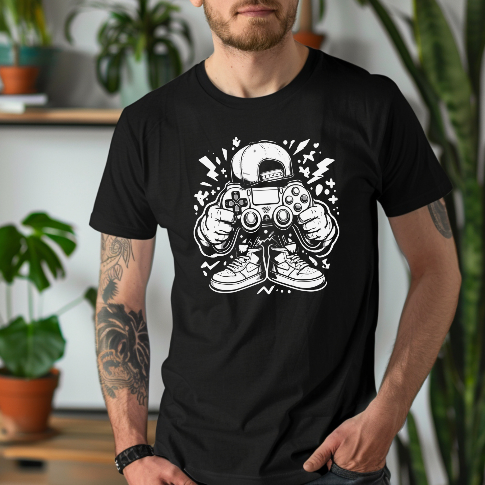 Jedes Shirt wird individuell und mit viel Liebe von Hand bedruckt – kleinere Abweichungen machen dein Shirt zu einem echten Einzelstück. 🎮🖤